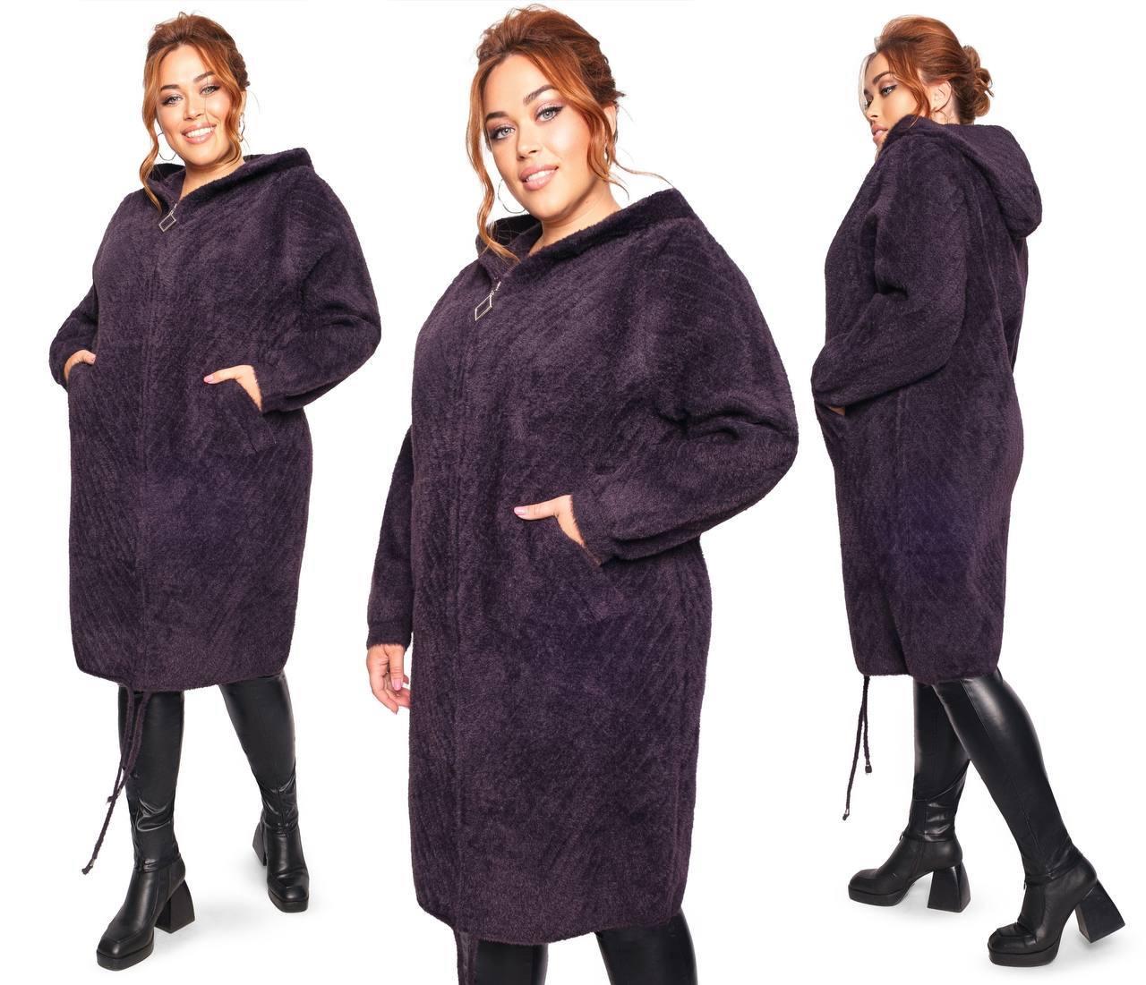 Жіноче тепле пальто оберсайз супер-батал з вовни альпаки р.52-56. Арт-3663/39