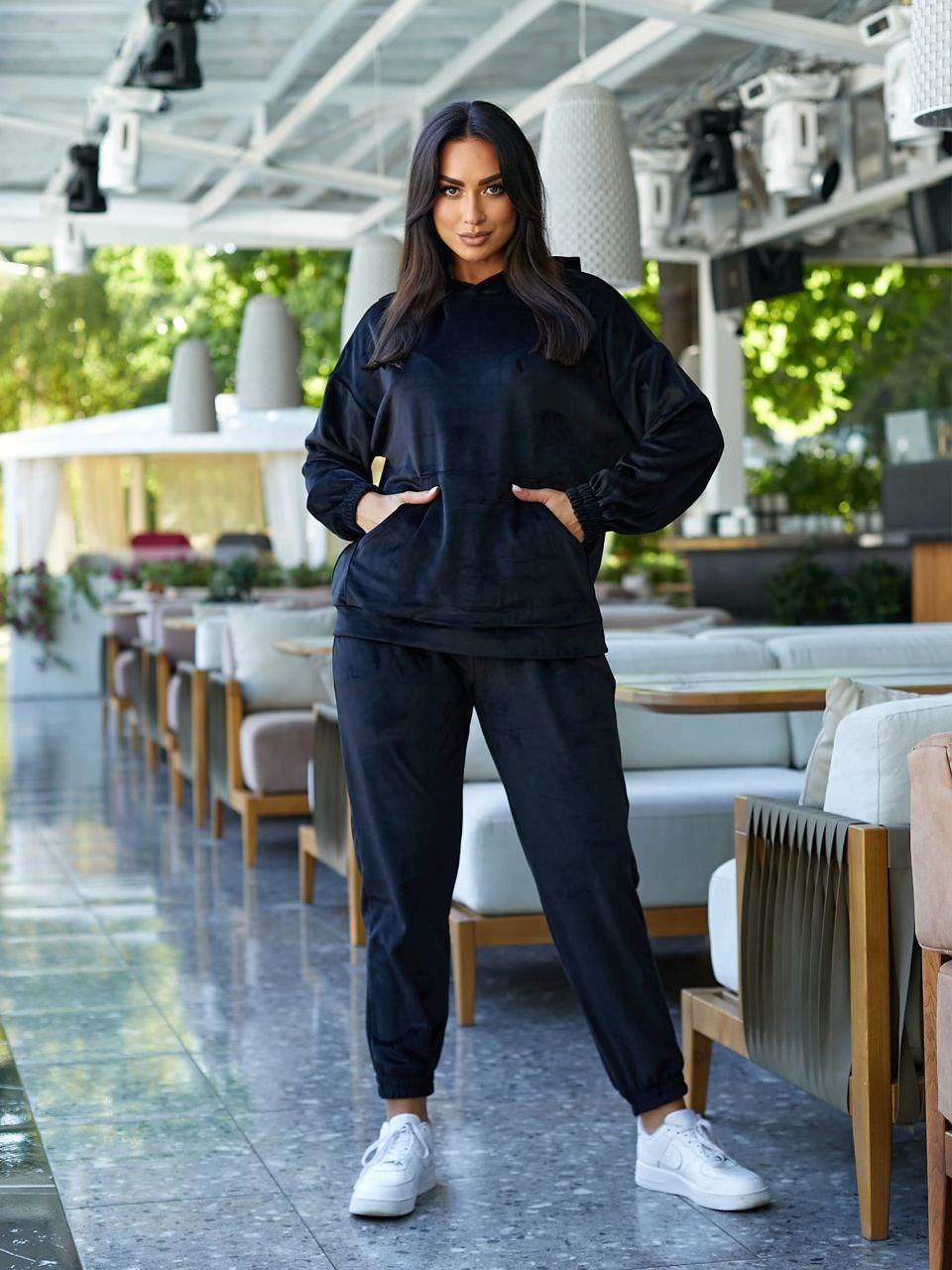Велюровий прогулянковий осінній спортивний костюм великих розмірів (р.50-56). Арт-2572/3
