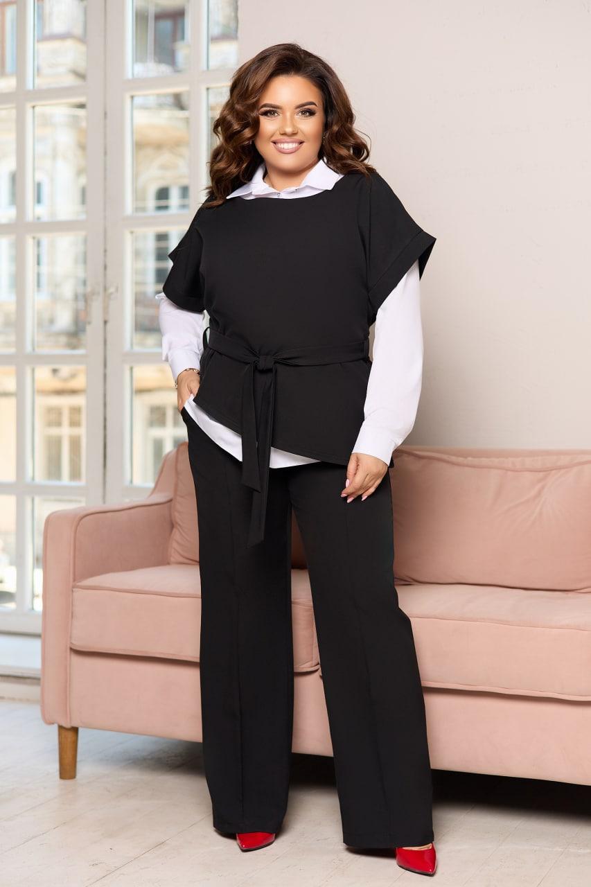 Стильний діловий костюм-трійка батал: сорочка + прямі штани + асиметрична кофта (р.48-62). Арт-3461/34