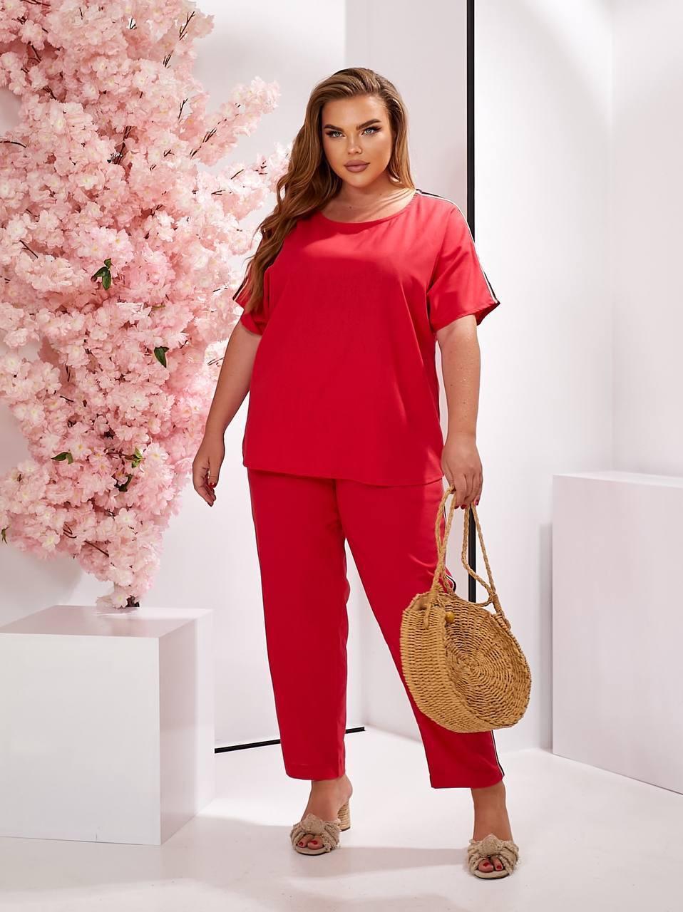 Літній лляний жіночий прогулянковий костюм-двійка батал: футболка + штани (р.48-62). Арт-1372/45
